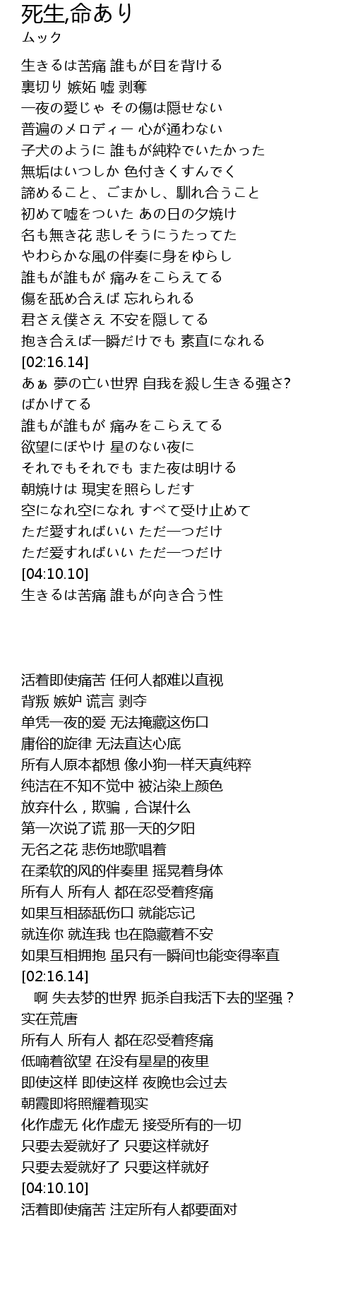 | [04:32.10] | 活着即使痛苦 注定所有人都要面对 |