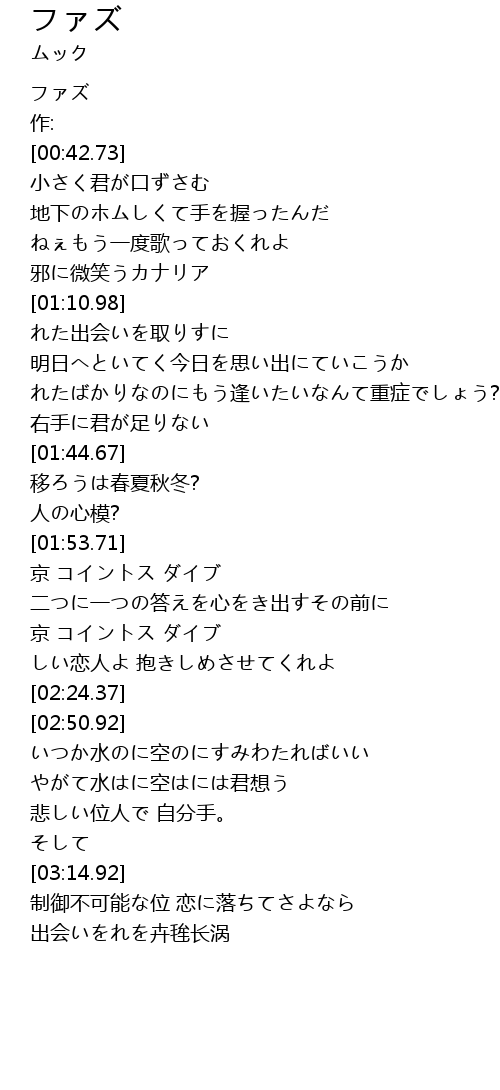 | [00:51.16] | 地下のホムしくて手を握ったんだ |