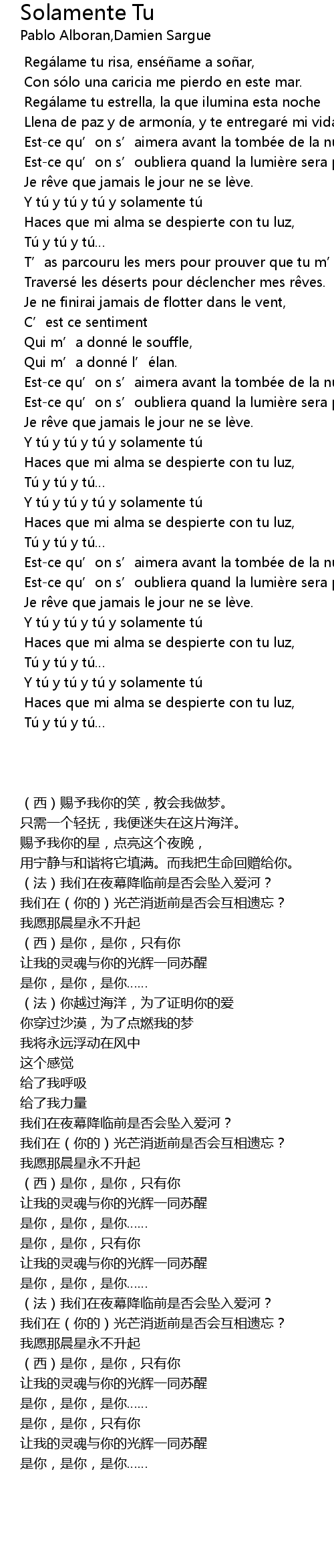 | [02:45.000] | Y tú y tú y tú y solamente tú |