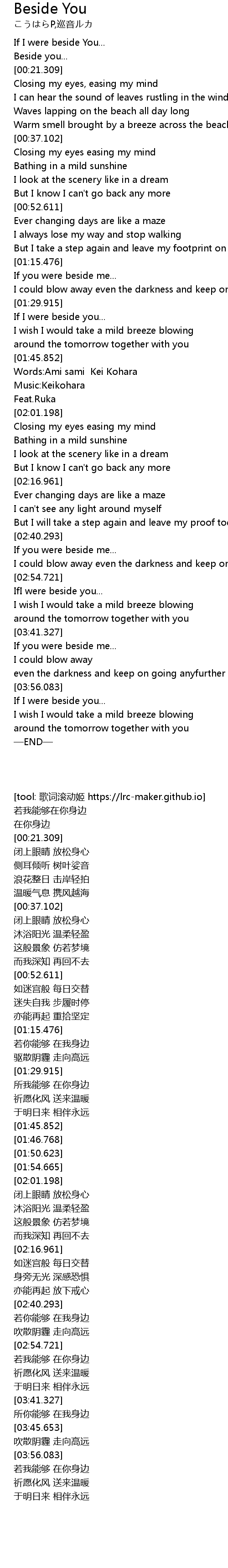 | [00:14.453] | Beside you... |