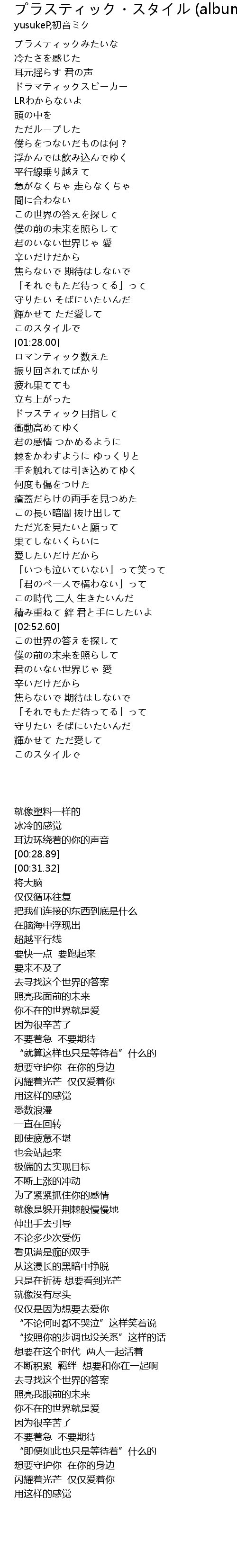 | [00:15.39] | プラスティックみたいな |