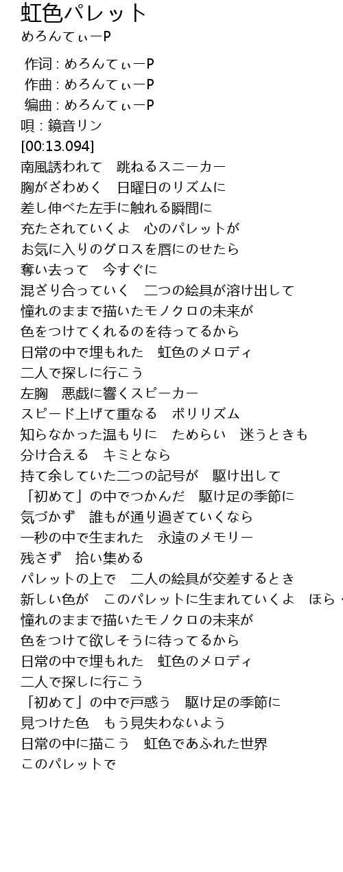 | [03:16.552] | 新しい色が このパレットに生まれていくよ ほら・・・ |