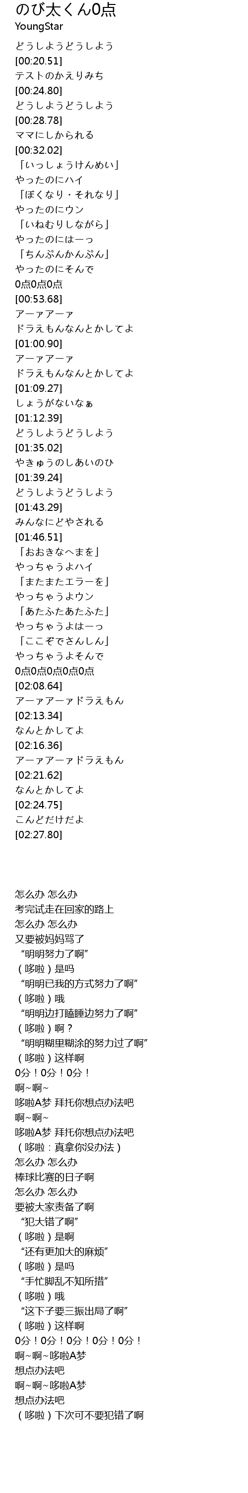 | [02:26.29] | (哆啦)下次可不要犯错了啊 |