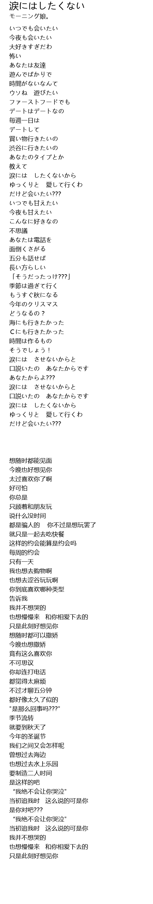 涙には させないからと |