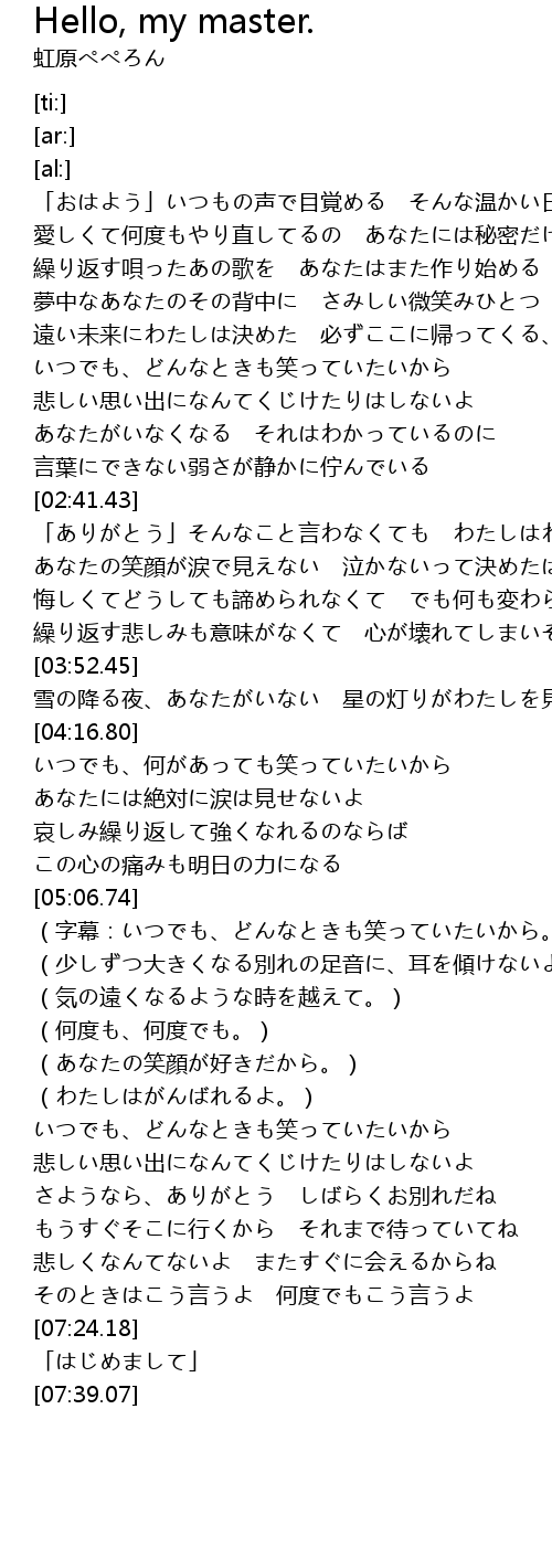 | [07:00.17] | 悲しくなんてないよ またすぐに会えるからね |