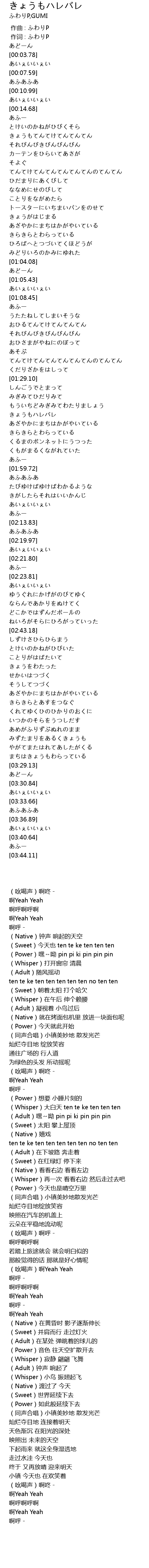 | [01:16.97] | (Adult)嘿~呦 pin pi ki pin pin pin |