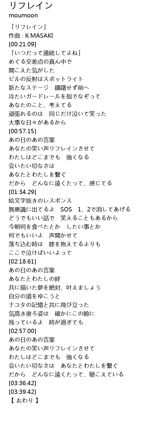 | [03:05.50] | あなたの笑い声リフレインさせて |