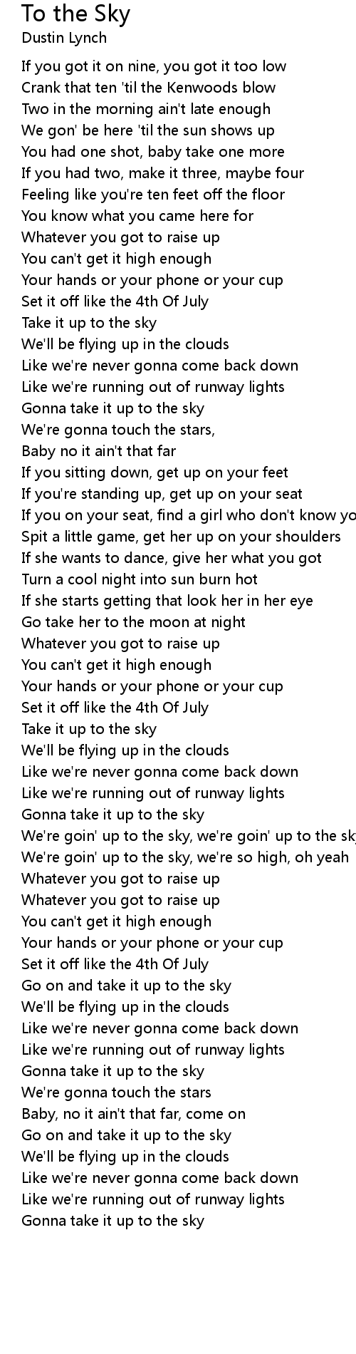 Gonna take it up to the sky |