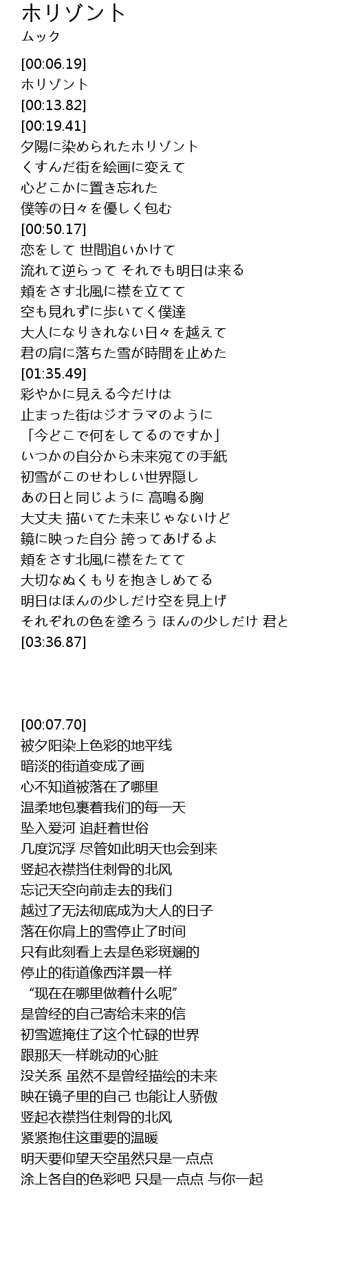 | [00:07.70] | ホリゾント |