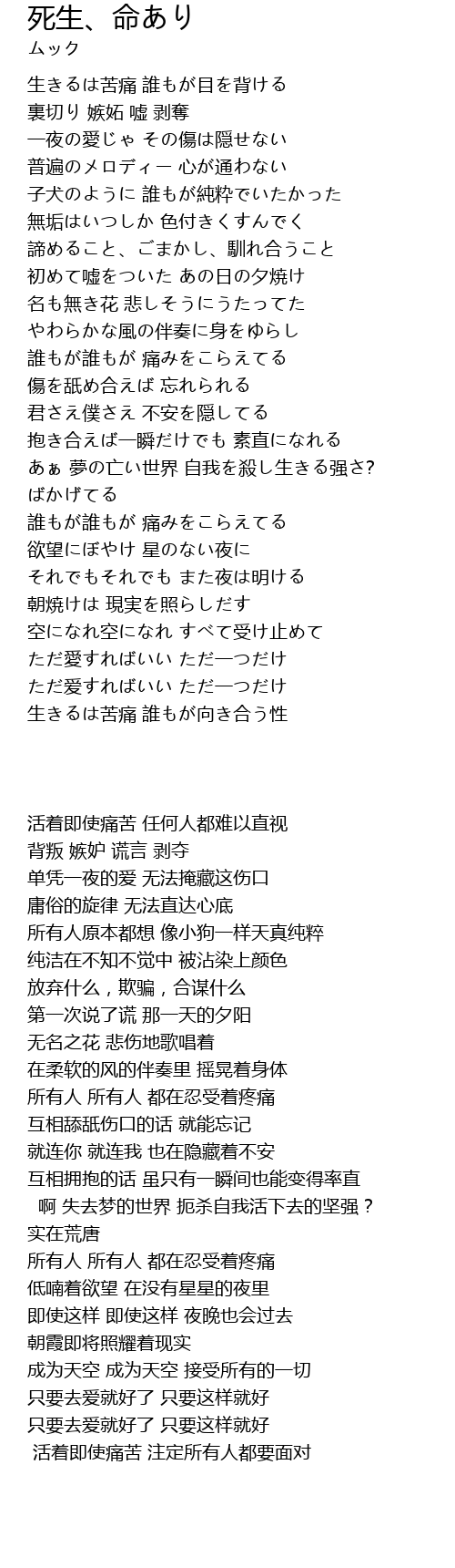 | [04:32.50] | 活着即使痛苦 注定所有人都要面对 |
