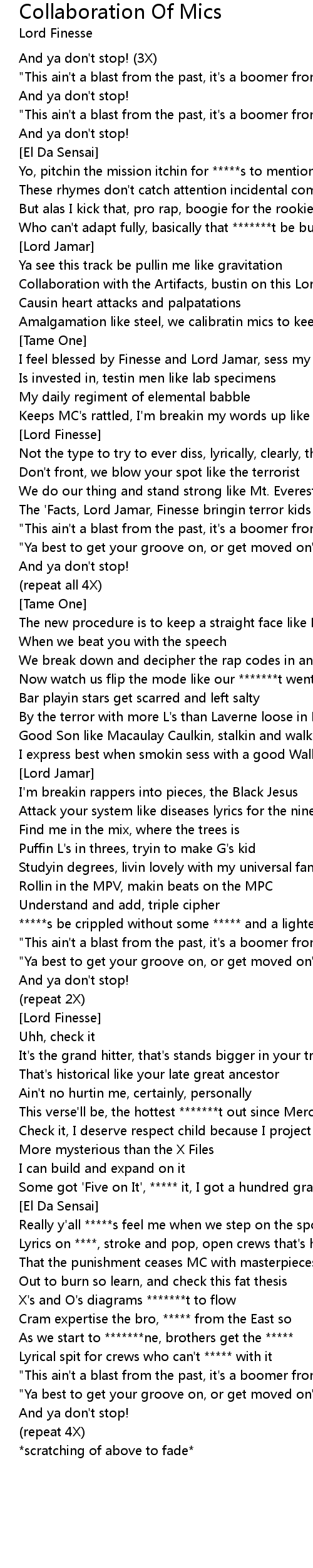 I feel blessed by Finesse and Lord Jamar, sess my interest |