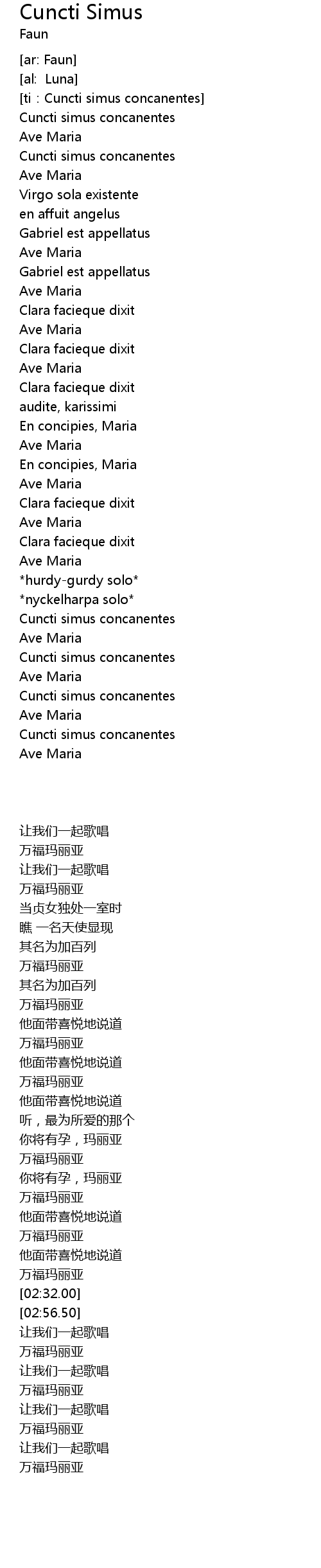 | [01:00.00] | Ave Maria |
