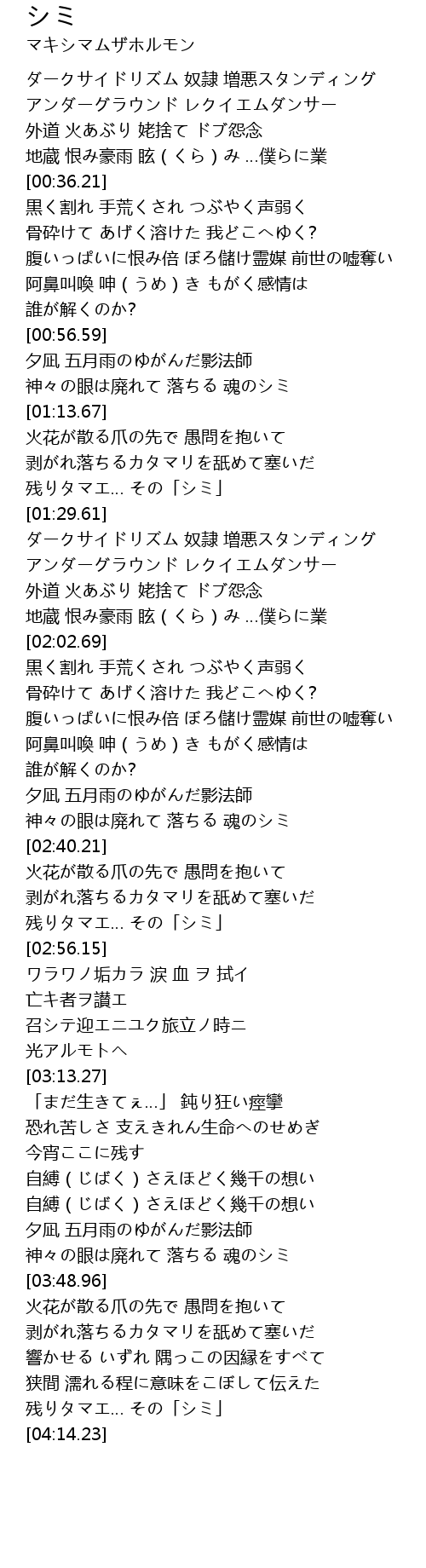 | [04:08.55] | 残りタマエ… その「シミ」 |