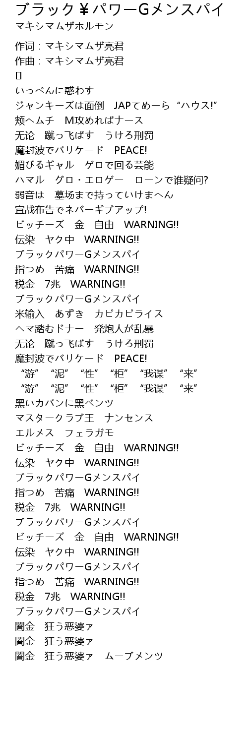 | 歌曲 | ブラック¥パワーGメンスパイ |