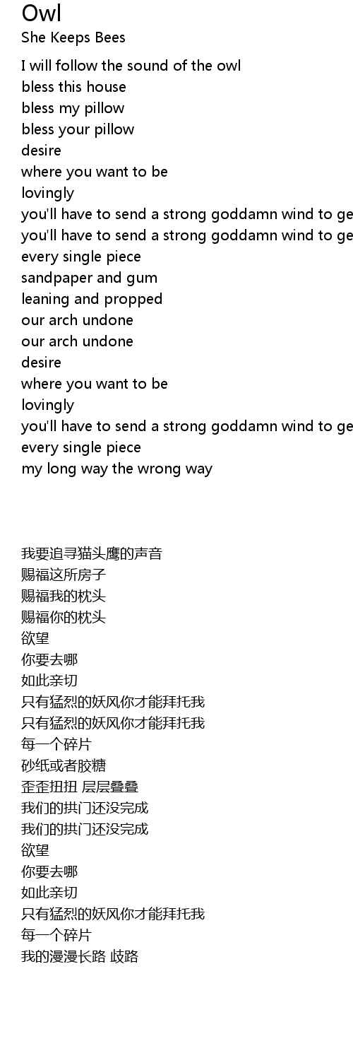 I will follow the sound of the owl |