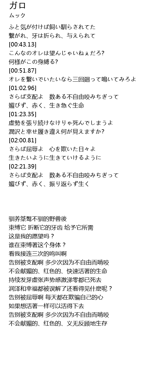 | [02:31.80] | 不会献媚的、红色的、义无反顾地生存 |