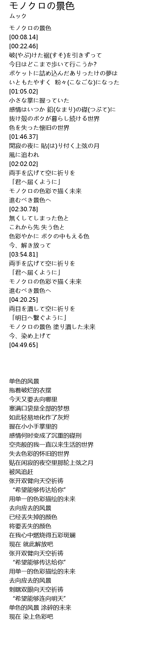 | [00:00.00] | モノクロの景色 |