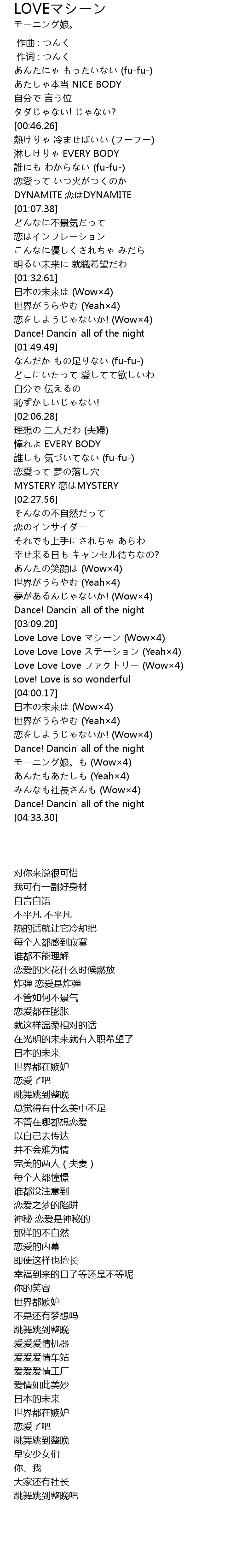 | [04:18.14] | モーニング娘。も (Wow×4) |