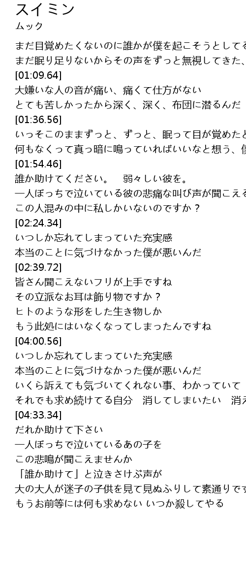 | [05:24.18] | もうお前等には何も求めない いつか殺してやる |