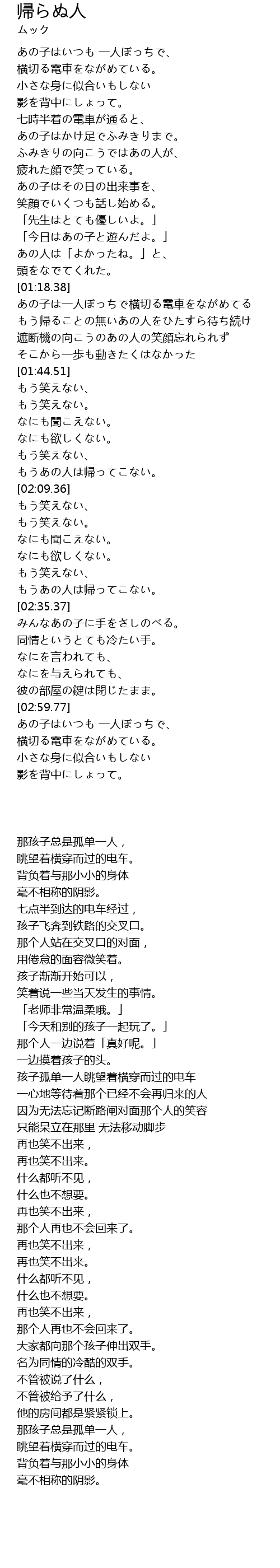 | [01:59.43] | もうあの人は帰ってこない。 |