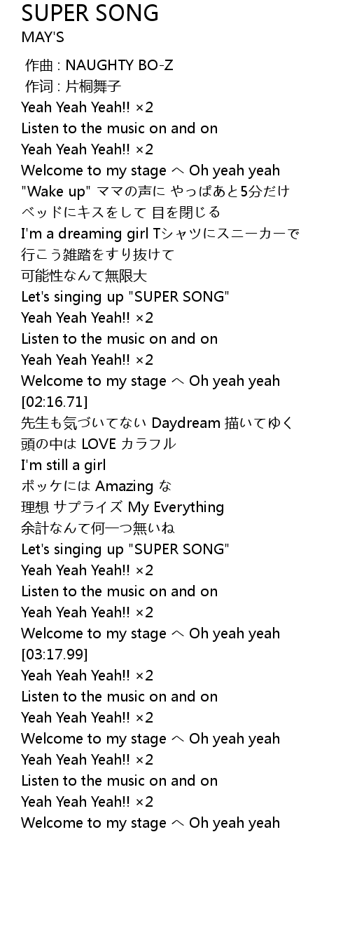 | [02:58.98] | Let's singing up "SUPER SONG" |