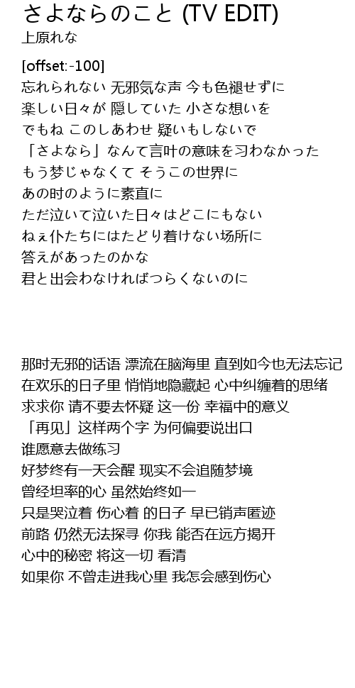 | 歌曲 | さよならのこと (TV EDIT) |