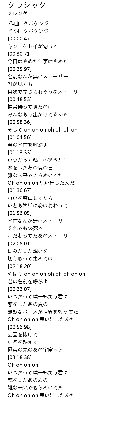 | [00:00.15] | 作词 : クボケンジ |
