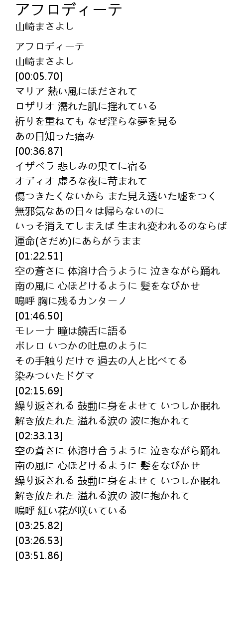 | [03:01.27] | 繰り返される 鼓動に身をよせて いつしか眠れ |