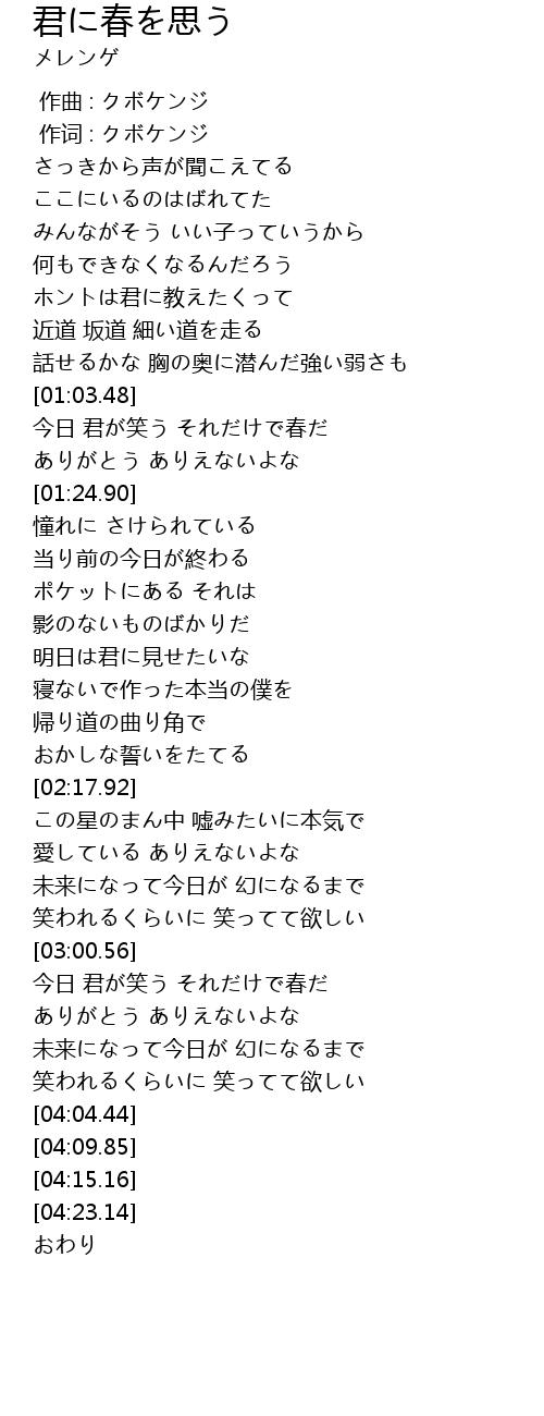 | [01:03.91] | 今日 君が笑う それだけで春だ |