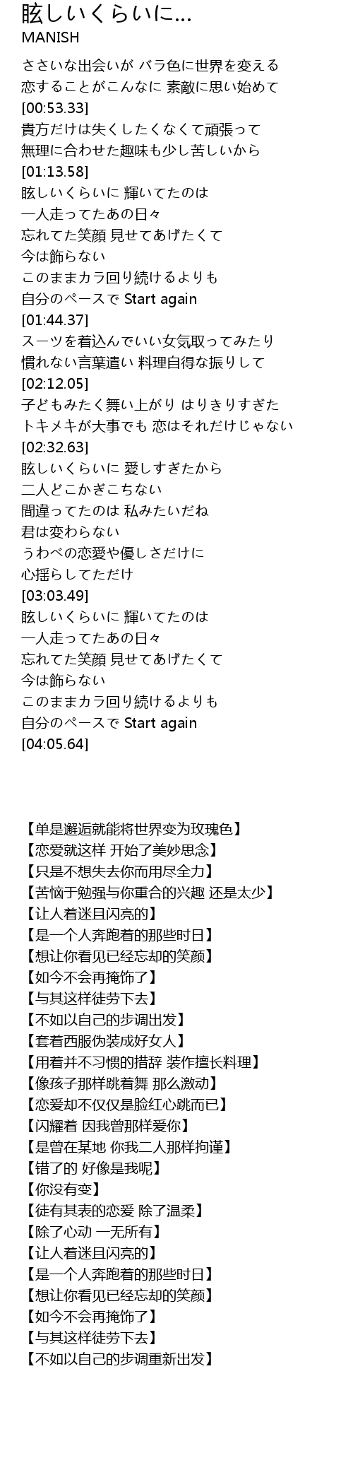 | 歌曲 | 眩しいくらいに… |