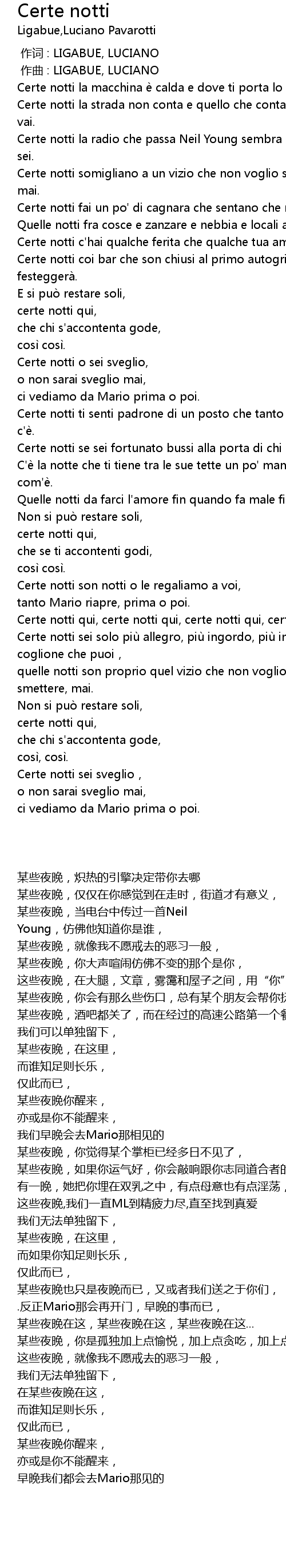 | [00:00.000] | 作词 : LIGABUE, LUCIANO |