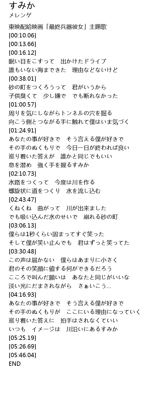 | [00:05.25] | 東映配給映画「最終兵器彼女」主題歌 |