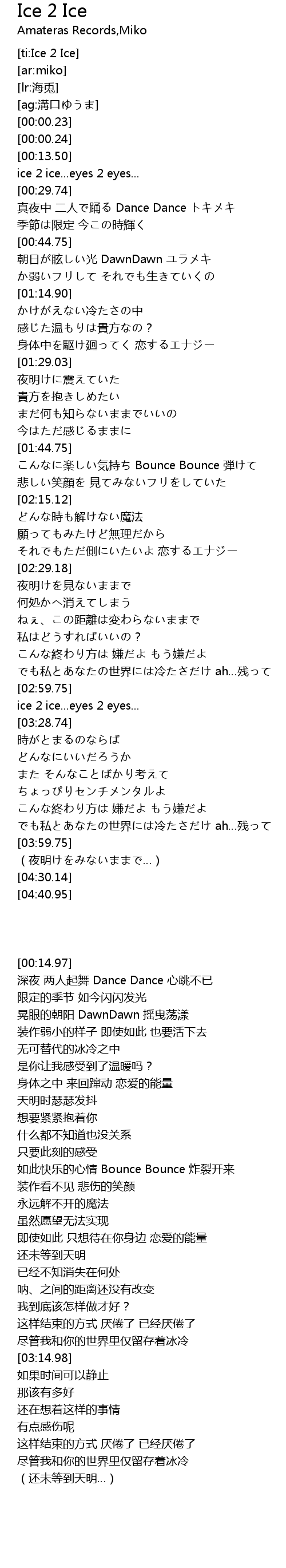 | [00:14.97] | ice 2 ice...eyes 2 eyes... |