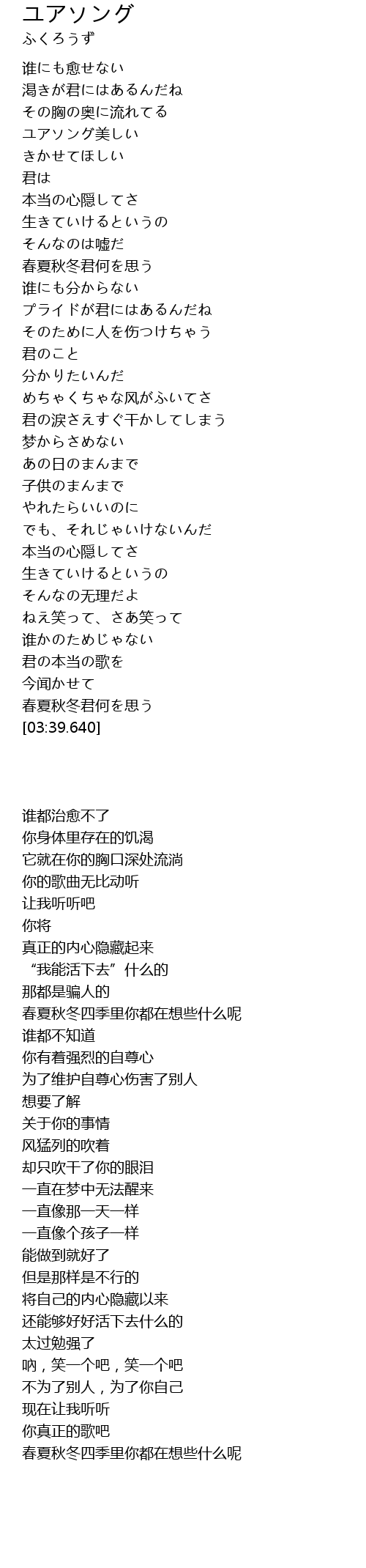 | [00:47.400] | ユアソング美しい |