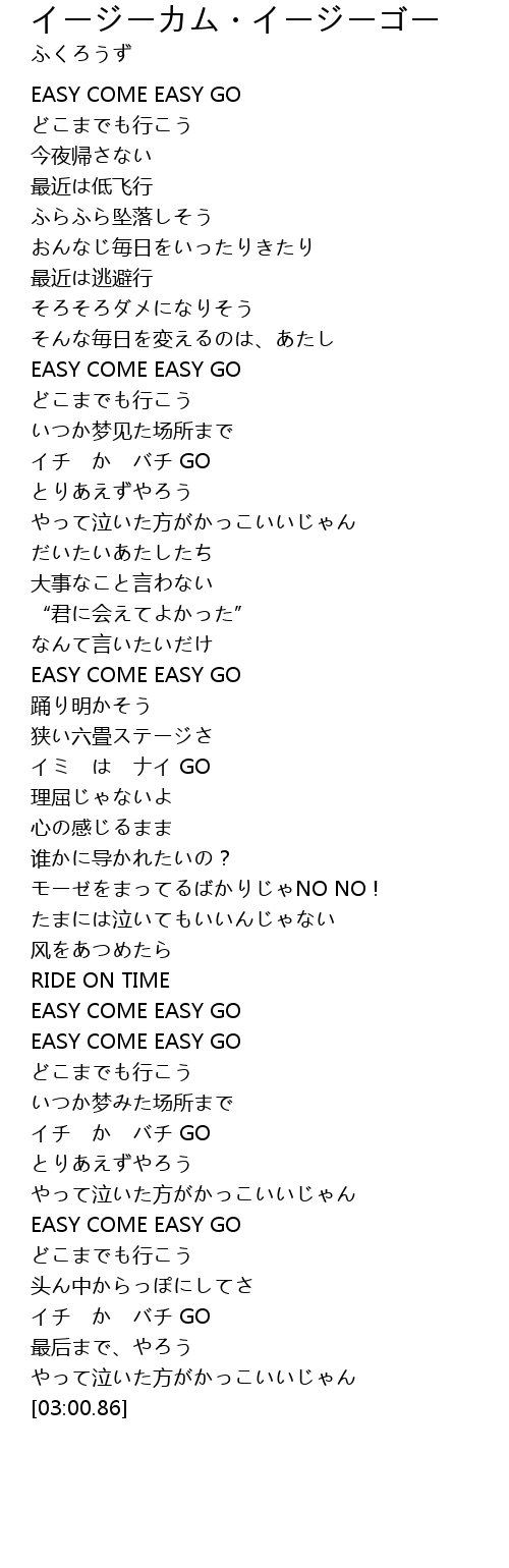 EASY COME EASY GO |
