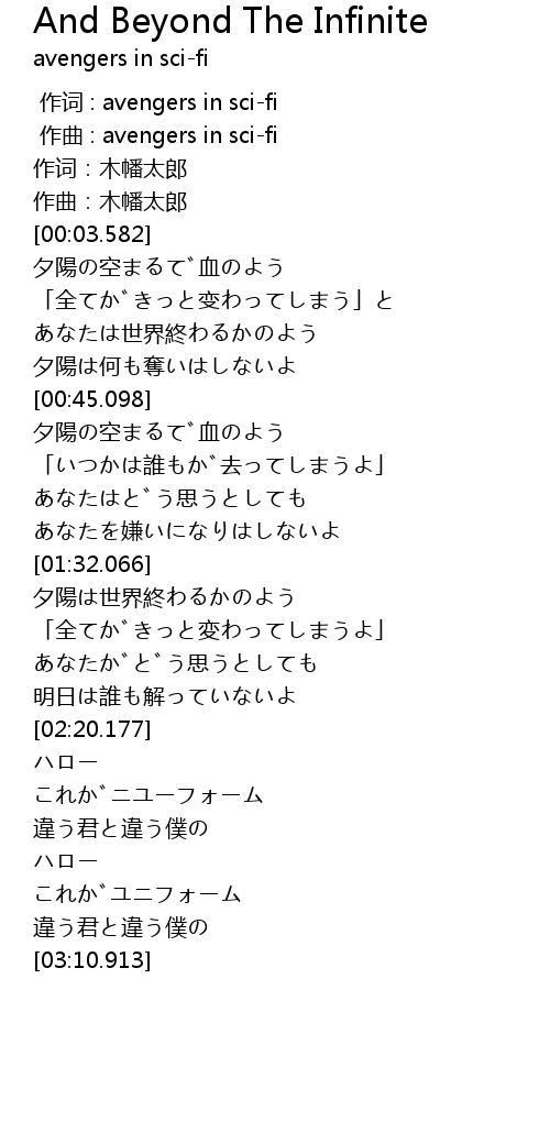 | [00:01.000] | 作曲 : avengers in sci-fi |
