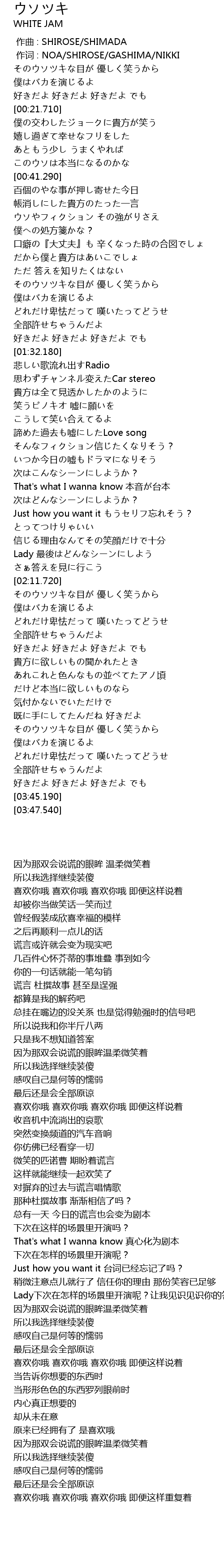 | [00:00.166] | 作词 : NOA/SHIROSE/GASHIMA/NIKKI |