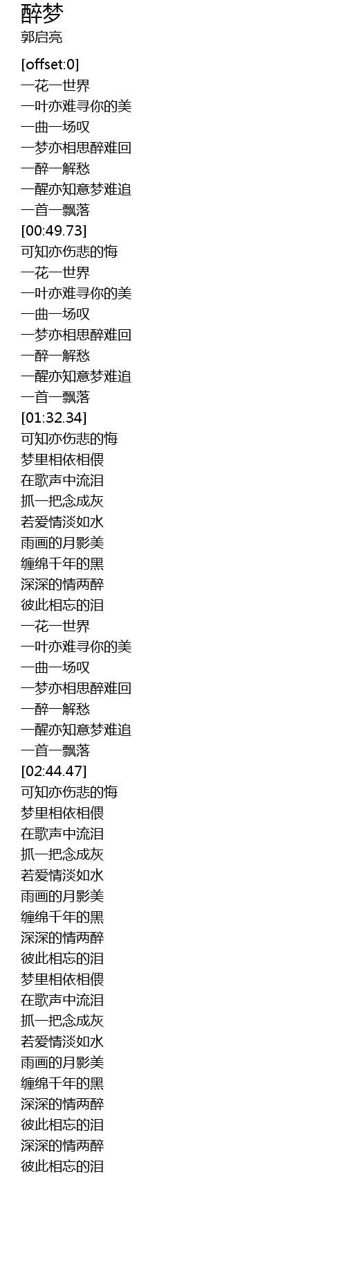 | [00:43.06] | yī xǐng yì zhī yì mèng nán zhuī |