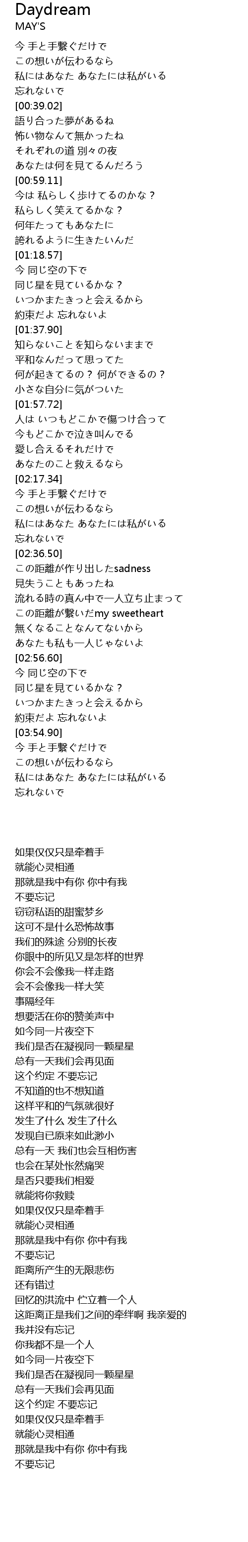 | [03:40.37] | 我们是否在凝视同一颗星星 |