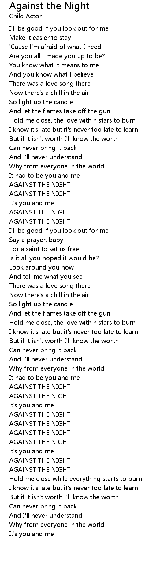 AGAINST THE NIGHT |
