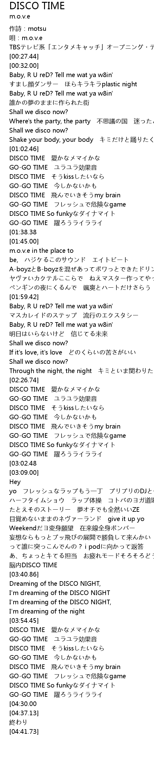 | [02:33.65] | DISCO TIME kiss |