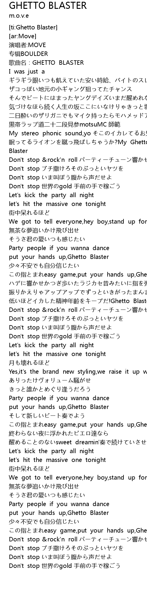 | [00:10.698] | 歌曲名:GHETTO BLASTER |