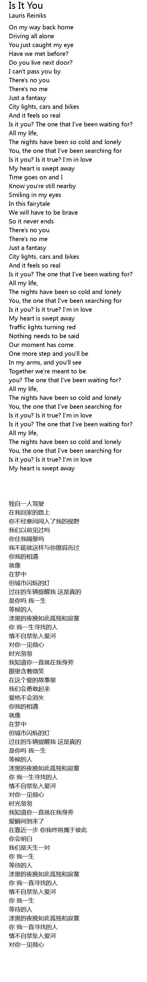 Is it you? Is it true? I'm in love |
