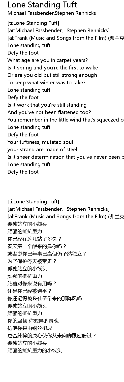 | 歌曲 | Lone Standing Tuft |