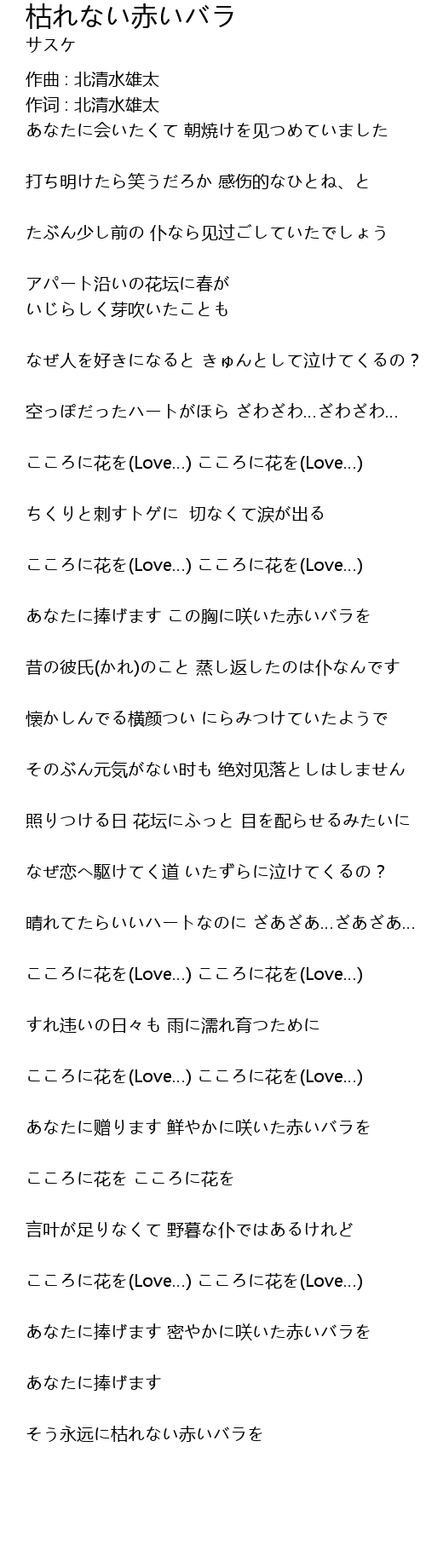 | [05:00.88] | そう永远に枯れない赤いバラを |