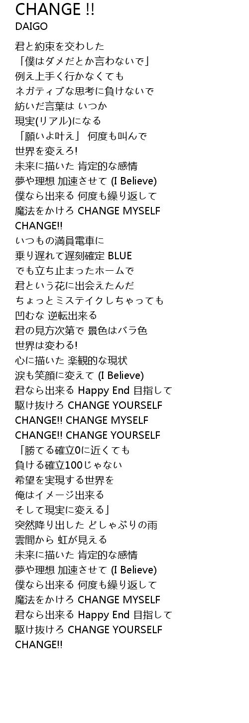 | CHANGE!! CHANGE YOURSELF | |