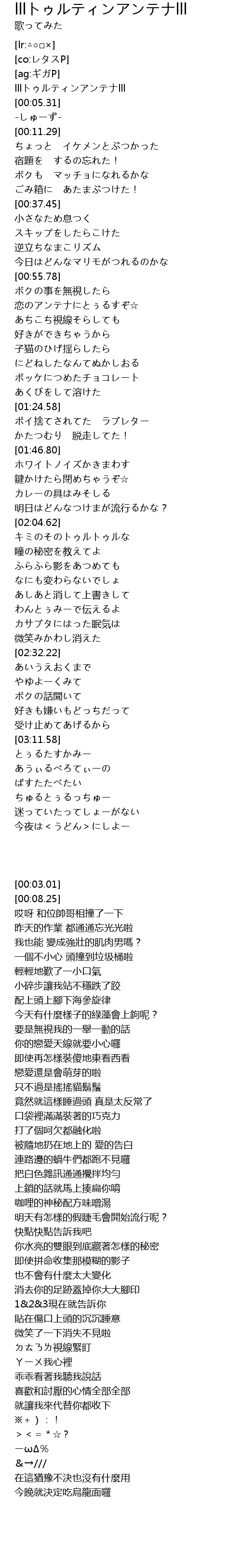 | [00:03.01] | lllトゥルティンアンテナlll |