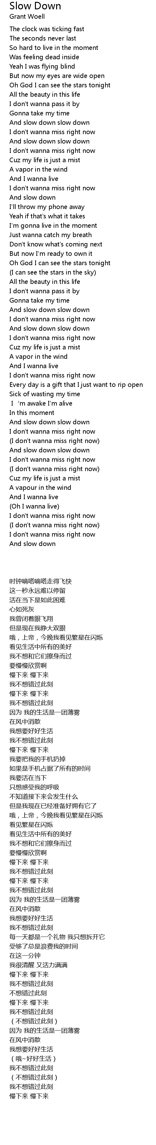| [03:21.24] | 慢下来 慢下来 |