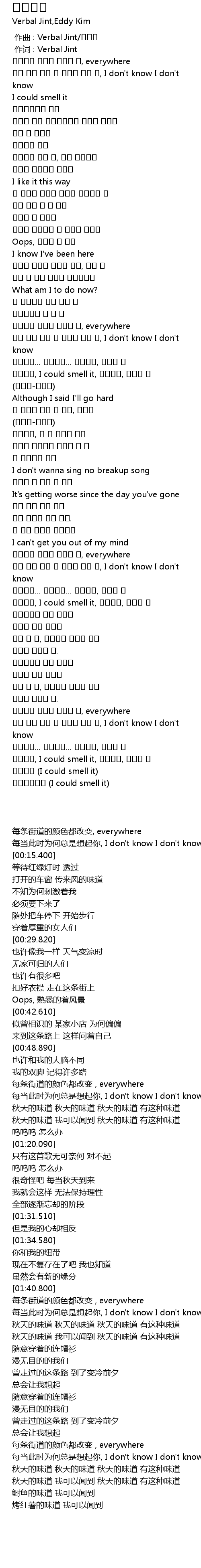 | [02:50.700] | 가을냄새, I could smell it, 가을냄새, 냄새가 나 |