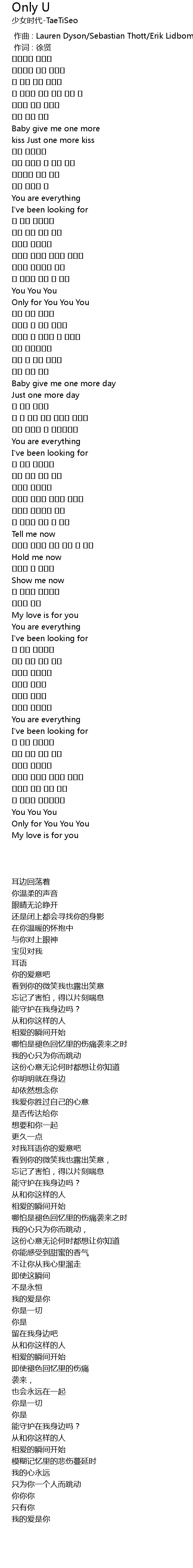 | 歌曲 | Only U |